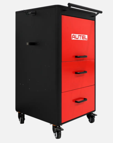 The Autel ADAS Accessory Storage Cabinet is perfect for safely storing your Autel ADAS calibration and alignment accessories. Purchase the optional Tire Clamp or Rim Clamp storage brackets to attach to the cabinet for convenient storage. The attractive yet sturdy Autel-branded metal cabinet features a large center storage space with a slide-out shelf, pull-up door, two additional storage drawers, and foam insert for storing clamp targets. The cabinet rests on four sturdy metal casters, allowing it to be moved easily through your shop. A one-year limited warranty covers the unit.