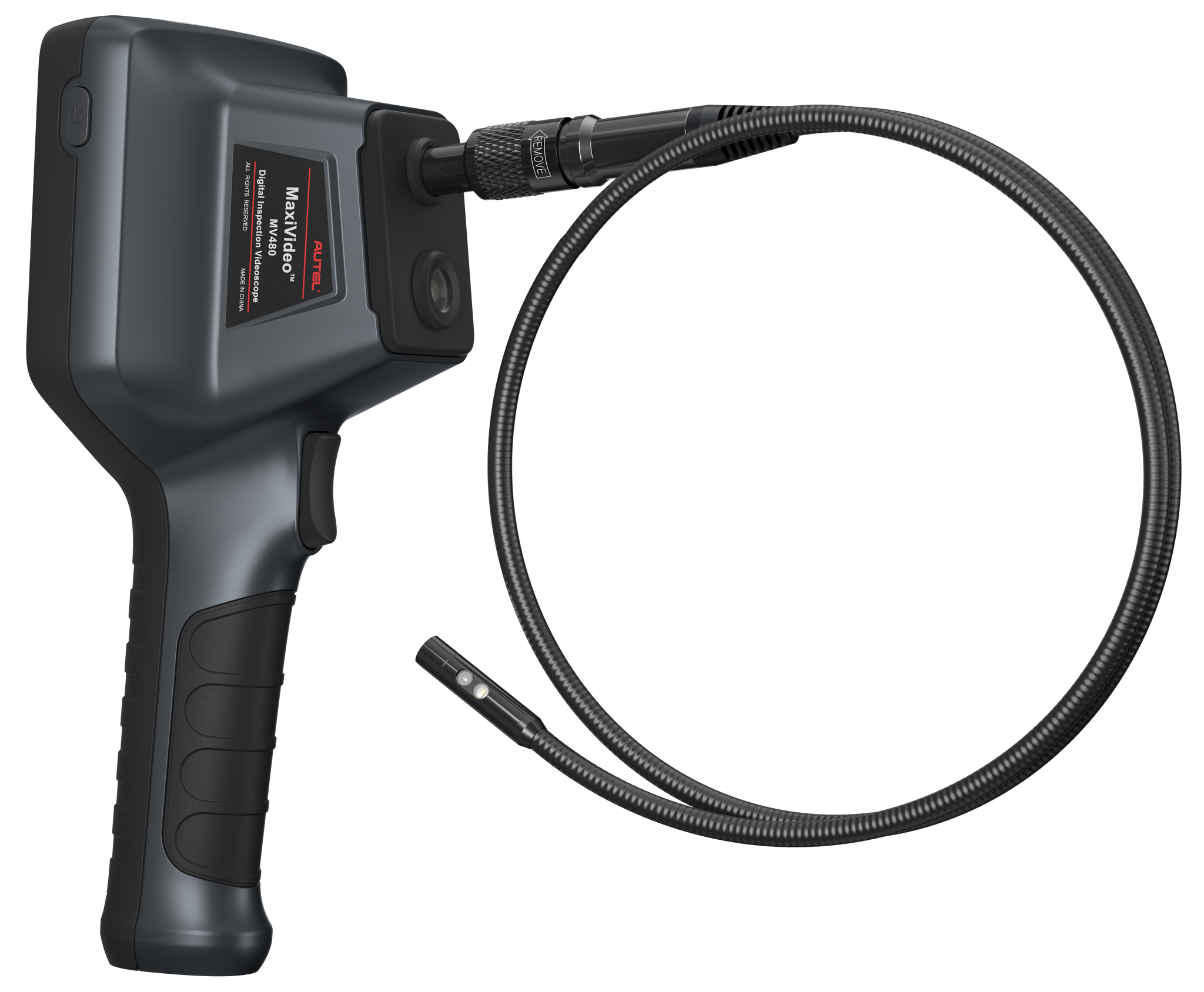 The MaxiVideo MV480, the next generation of digital videoscope, is ideal for inspecting difficult-to-reach areas with its semi-rigid flexible cable and 10-level adjustable LED light. It features dual front and side cameras with 1920×1080 high resolution, a 4.1" 1200×720 full color LCD display, an 8.5mm camera probe, and a built-in 2600mAh battery with up to 4 hours continuous use. This multipurpose videoscope is an economical solution to inspect machinery, facilities, and infrastructure in the safest, quickest and most cost-effective manner possible.